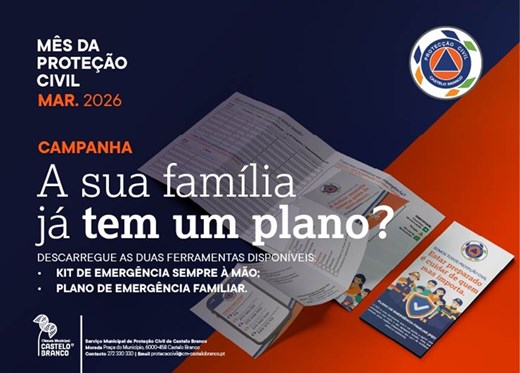 No âmbito do Mês da Proteção Civil, o Serviço Municipal de Proteção Civil de Castelo Branco lança a Campanha ‘A Minha Família Está Preparada’, composta por duas ferramentas, disponíveis para download, que ajudam as famílias a prepararem-se em caso de emergência:- ‘Kit de Emergência Sempre à Mão’Trata-se de uma check-list para que cada cidadão possa verificar que materiais e alimentos deve ter em casa e que permitirão a autossuficiência de uma pessoa ou família durante as primeiras 72 horas após uma catástrofe ou acidente, atendendo às especificidades e diversidade de cada uma delas, não esquecendo, por exemplo, os animais domésticos.Os documentos estão disponíveis, através do seguinte endereço: PS_CHECKLIST_EMERGENCY_A4PS_CHECKLIST_EMERGENCY_QUADRIPTICO_PRINT- ‘Plano de Emergência Familiar’É um documento que tem campos em aberto, permitindo que cada família preencha, definindo a estratégia do seu agregado familiar, preparando-os em caso de emergência ou catástrofe.Os documentos estão disponíveis, através do seguinte endereço:PS_PLAN_FAMILY_A4PS_PLAN_FAMILY_QUADRIPTICO_PRINTO Município de Castelo Branco considera que estas duas ferramentas podem fazer verdadeiramente a diferença, pois quando o cidadão está preparado, a mobilização de meios e recursos de proteção civil é eficazmente gerida, servindo as necessidades mais urgentes.
