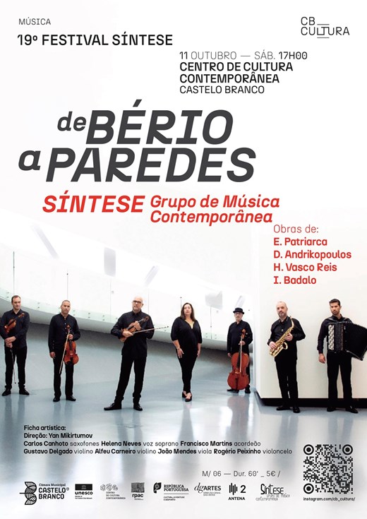 Este programa nasceu de um desafio lançado pelo Síntese Grupo de Música Contemporânea a quatro compositores: o de construir pontes entre dois criadores – ambos nascidos em 1925 - com percursos bem diferentes mas que marcaram, cada um à sua maneira, a criação musical em Portugal. Luciano Berio, compositor fundamental na segunda metade do século XX, foi ele próprio um fazedor de pontes entre as múltiplas possibilidades abertas à criação musical no século XX, a diversidade de universos sonoros que marcaram o seu tempo, e a herança musical de outros tempos. Carlos Paredes transformou a sonoridade da guitarra portuguesa numa paisagem sonora rica e sofisticada, marcadamente portuguesa mas simultaneamente universal na sua abordagem. Em ambos, uma atitude profundamente humanista em relação ao seu papel como criadores. Respondendo ao desafio lançado, Inés Badalo, Eduardo Luís Patriarca, Hugo Vasco Reis e Dimitris Andrikopoulos são os construtores destas pontes sonoras entre Berio e Paredes.