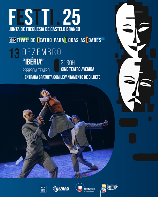 O FESTTI.25 – Festival de Teatro Para Todas as Idades, organizado pela Junta de Freguesia de Castelo Branco em parceria com o Váatão – Teatro de Castelo Branco e com o apoio do Município, decorre entre 16 de novembro e 13 de dezembro.