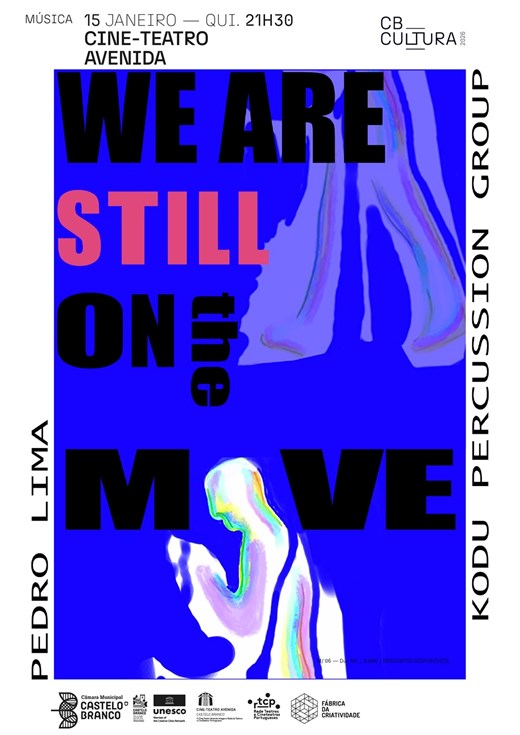 - We Are Still on the Move é uma performance concebida para cinco percussionistas, vídeo e eletrónica que convoca o corpo, o som e a imagem propondo uma reflexão sobre a relação entre o Humano, a Máquina e a Natureza. Um diálogo de forças — orgânicas e artificiais, primitivas e tecnológicas — em que a obra questiona o nosso lugar num mundo em permanente transformação, onde o futuro é uma incógnita e a sobrevivência um exercício de resiliência.?O movimento surge como resposta inevitável: pulsação, gesto, deslocação, resistência.?Entre o ritmo coletivo da percussão e a presença imersiva da eletrónica e do vídeo, constrói-se um espaço onde se escuta a dissonância e a harmonia entre o Homem e a mecânica sistemática que não varia na persistência da repetição. Oscilando entre a fragilidade da vida e a potência das forças que a ultrapassam: onde estamos afinal??We Are Still on the Move é uma performance que é se desdobra num rito, num manifesto e numa viagem — uma celebração da inquietude e da vitalidade de estarmos — ainda — em movimento.?