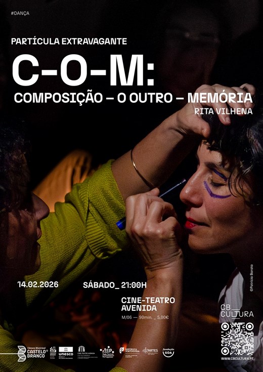 C-O-M: Composição – o Outro – Memória é uma performance solo e interativa de Rita Vilhena que aprofunda a investigação iniciada em Raio de Ti / Multirising the Other in I (2023). Se antes o foco era o autobiográfico, aqui pergunta-se: pode a história do outro ser transmitida, incorporada e transformada em ritual? Neste dispositivo cénico, a bailarina-performer acolhe e encarna narrativas partilhadas pelo público, convertendo-as em movimento, presença e gesto. A cada encontro cria-se um espaço de troca sensorial e emocional, onde as fronteiras entre observador e intérprete se tornam permeáveis. A performer torna-se canal e corpo-recetáculo, dando forma às memórias e sensações que lhe são confiadas. A obra integra ainda elementos visuais e sonoros que ampliam a dimensão poética e imersiva, conduzindo público e intérprete a uma experiência comum de escuta e transformação. C-O-M afirma-se como um ritual íntimo e coletivo, onde cada história pode, por instantes, ganhar outra forma de existir.