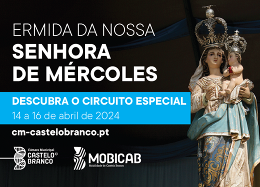 Nos dias 14, 15 e 16 de abril, a Câmara Municipal de Castelo Branco disponibiliza aos munícipes um serviço especial de transporte, gratuito, desde a cidade até à Ermida de Nossa Senhora de Mércoles.