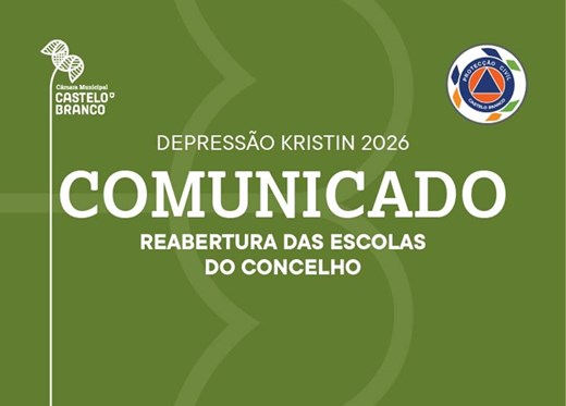 O Município de Castelo Branco informa que, após avaliação técnica efetuada no terreno, se encontravam reunidas as condições necessárias para a reabertura de alguns estabelecimentos de ensino no concelho, esta quinta-feira, 29 de janeiro.