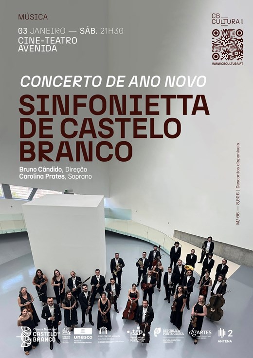 No dia 03 de janeiro de 2026, a Sinfonietta de Castelo Branco, sob a direção de Bruno Cândido, apresenta o Concerto de Ano Novo. O programa evidencia o trabalho artístico desenvolvido pela Sinfonietta enquanto estrutura profissional dedicada à interpretação e difusão do repertório orquestral, com especial atenção à qualidade interpretativa e à consistência do projeto musical. Com uma atividade regular na região e uma ligação à formação de públicos, este concerto assinala o início da programação de 2026, reforçando o papel da Sinfonietta de Castelo Branco no panorama cultural local e regional.