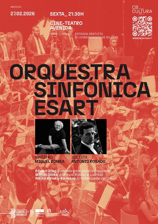 ORQUESTRA SINFÓNICA ESARTMaestro - MIGUEL ROMEASolista - ANTÓNIO ROSADOEdvard GriegConcerto para piano e orquestraMikhail GlinkaAbertura Ruslan e LudmilaNikolai Rimsky - KorsakovScheherazade, op. 35
