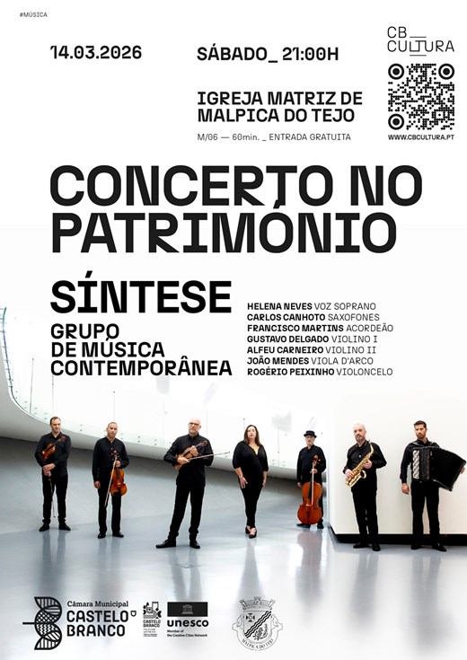 O Síntese Grupo de Música Contemporânea apresenta uma temporada de concertos em locais históricos, durante o ano de 2026. Cada concerto será uma fusão única entre a expressão musical contemporânea e o património cultural, oferecendo experiências imersivas para o público.