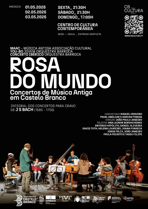 O ciclo “Rosa do Mundo - Música Antiga em Castelo Branco”, promovido pela MAAC – Música Antiga Associação Cultural, apresenta a Integral dos Concertos para Cravo de Johann Sebastian Bach. O programa será interpretado pela YOU-BO Jovem Orquestra Barroca, com Raquel Cravino como concertino e direção de João Paulo Janeiro.